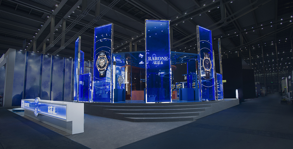外墻8塊2米高藍(lán)色通透亞克力分別展示雷諾表自創(chuàng)立以來,從高端制表工藝、創(chuàng)新性用料到質(zhì)量標(biāo)準(zhǔn)認(rèn)證等多個維度的代表性表款。其中最具代表性的是,2012年孫紅雷先生親自參與設(shè)計(jì)的騎士系列,完美的演繹了雷諾表創(chuàng)新性與個性化的腕表設(shè)計(jì)。