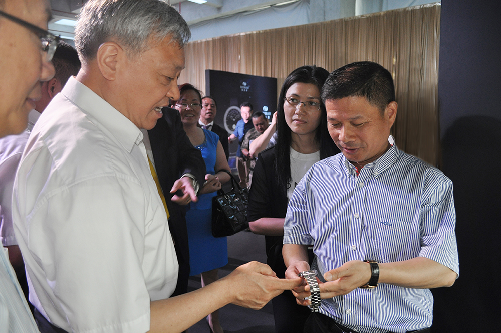活動(dòng)現(xiàn)場(chǎng),深圳市相關(guān)領(lǐng)導(dǎo)及鐘表行業(yè)協(xié)會(huì)領(lǐng)導(dǎo)、各品牌高層一同為文博會(huì)鐘表分會(huì)場(chǎng)揭幕,并參觀鐘表展覽區(qū)。雷諾表作為商務(wù)手表品牌,攜騎士商務(wù)系列、博鰲··鼎智系列、夜色系列在6號(hào)展位亮相。政委領(lǐng)導(dǎo)參觀雷諾展區(qū)時(shí),對(duì)雷諾表春秋系列贊譽(yù)有加,并鼓勵(lì)雷諾表挖掘更多中國(guó)傳統(tǒng)文化精髓,將鐘表技術(shù)與中國(guó)傳統(tǒng)文化相結(jié)合,引領(lǐng)鐘表新潮流。
