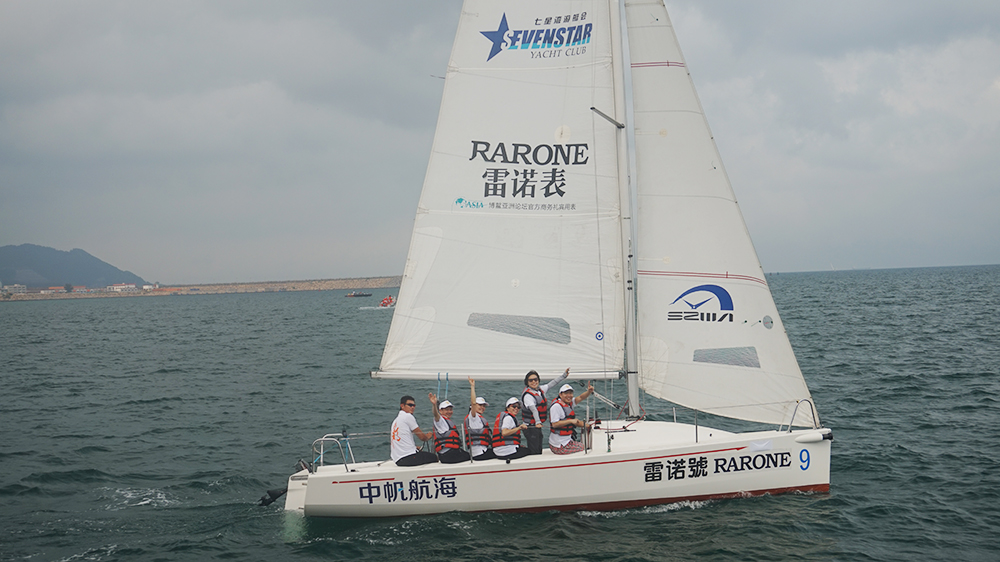 下午,海面迎來(lái)微涼的海風(fēng),令人心情開朗。開闊的海面,清綠的海水,飽滿的士氣,雷諾團(tuán)隊(duì)揚(yáng)起專屬雷諾表的“雷諾號(hào)”帆船。雷諾表董事長(zhǎng)詹西洲先生親自率領(lǐng)雷諾團(tuán)隊(duì)一同登上“雷諾號(hào)”,在海面上開始了與其他深圳鐘表品牌的帆船友誼賽。