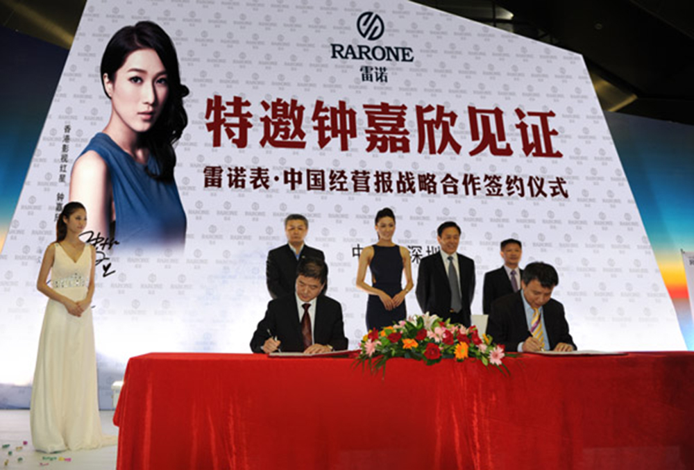 6月29日,雷諾表與《中國經(jīng)營報》簽訂戰(zhàn)略合作協(xié)議,首次成就鐘表品牌與商務媒體的強勢結(jié)合。同時盛邀香港當紅影星鐘嘉欣出席儀式,共同見證雷諾表又一品牌推廣戰(zhàn)略盛事。
