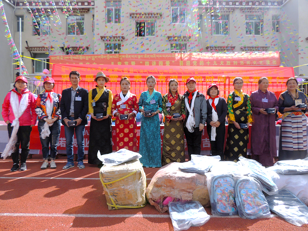 雷諾表業(yè)總經(jīng)理詹江洲先生攜團(tuán)隊遠(yuǎn)赴邊疆,走進(jìn)西藏波密縣多吉鄉(xiāng)小學(xué),提前和邊疆的孩子們歡度節(jié)日,為邊疆的小朋友們送去了祝福和溫暖,孩子們以當(dāng)?shù)鼐哂忻褡逄厣姆沁z歌舞-帕雄熱巴舞迎接遠(yuǎn)道而來的客人。